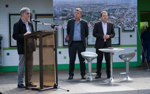 Jean-Claude Kennedy, maire (PCF) de Vitry-sur-Seine, Michel Leprêtre, président (FDG) du T12, et Pascal Savoldelli, vice-président (PCF) du conseil départemental du Val-de-Marne. © Jgp