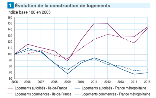 Le bilan 2015 de l'Insee Ile-de-France, publié le 1er juin 2016, décrit une année économique en amélioration. Le chômage connaît une baisse relative et des secteurs comme la construction présentent un regain spectaculaire.