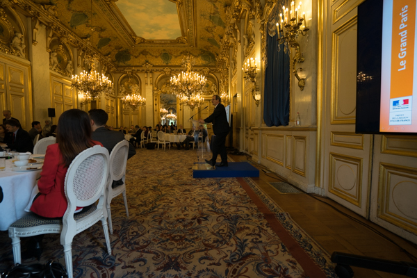 En plus d’annoncer aux diplomates le lancement du concours international « Inventons la Métropole du Grand Paris », Jean-François Carenco a rappelé les grands axes de cette future métropole, ©Jgp