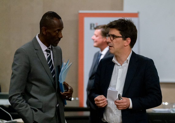 Le nouveau président du Territoire est allé saluer son rival d’un jour le maire de Saint-Ouen Karim Bouamrane. © Jgp