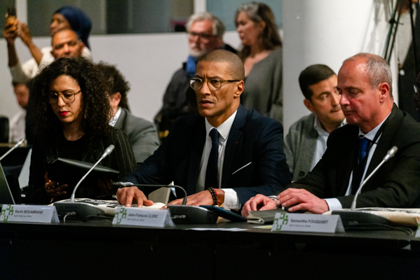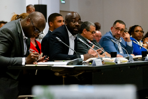 Le maire (PS) de Villetaneuse Dieunor Excellent a tenu à saluer le bilan de Mathieu Hanotin à la tête de Plaine Commune, en dépit des huées d’une partie de l’assemblée. Il a rappelé que l’ancien président avait eu le courage politique de porter des équipements structurants au bénéfice des communes les plus fragiles du Territoire, citant notamment la future piscine de Villetaneuse et les médiathèques accessibles à tous les habitants. « Le service public, c’est le patrimoine de ceux qui n’en ont pas », a-t-il lancé, citant Jean Jaurès, en soulignant que les habitants de Villetaneuse, ville jeune confrontée à de nombreux défis sociaux, ne sauraient bouder ces avancées concrètes. L’élu a également plaidé avec force pour un fonctionnement respectueux au sein de la nouvelle assemblée, dénonçant la violence qui avait marqué la campagne municipale – insultes, irruptions non annoncées, agressions verbales. Il a appelé l’ensemble des conseillers territoriaux, quelle que soit leur sensibilité politique, à se respecter mutuellement et à adopter une gouvernance réellement partagée, avertissant à son tour que Plaine Commune « ne pouvait être ni l’instrument d’un parti ni le terrain d’affrontements stériles, au risque de trahir la confiance des habitants qui y voient leur dernier rempart ».