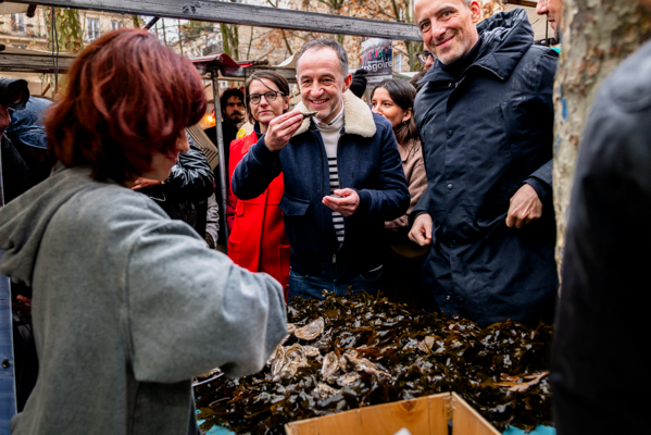 S’arrêtant à chaque étal, enchaînant les dégustations de beignets libanais et d’huîtres normandes, le candidat a montré, s’il le fallait, qu’après une longue pause, éclipsée par l’actualité politique nationale, la campagne municipale parisienne avait bel et bien commencé.