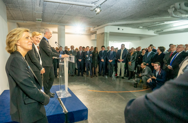 C’est loin du 5° arrondissement de Paris, au Plateau, vaisseau amiral du Fonds régional d’art contemporain (Frac), sur les hauteurs du 19°, que Franck Riester a remis, lundi 6 mai 2019, les insignes d’officier des Arts et des Lettres à Florence Berthout. En présence d’une foule de personnalités. Alors que les premières œuvres de l’exposition de Simon Starling, « Catherine, Masahiko, Rex et les autres », étaient accrochées, on notait notamment la présence de Jean-Baptiste Lemoyne, secrétaire d’État auprès du ministre de l’Europe et des Affaires étrangères, de Michel Cadot, préfet de région, d’une pléiade d’artistes, à l’instar de Charlélie Couture, d’anciens ministres, de Patrick Ollier à Jacques Toubon, Renaud Donnedieu de Vabres ou Jean-Louis Borloo, de nombreux élus, Jean-François Legaret, Pierre-Yves Bournazel, Jérôme Chartier ou Nathalie Fanfan, ainsi que des personnalités d’horizons divers, qu’il s’agisse d’Augustin de Romanet, président du groupe Aéroports de Paris, de Bertrand de Feydeau, président de la Fondation Palladio, ou de Nicolas Beytout, directeur de l’Opinion.