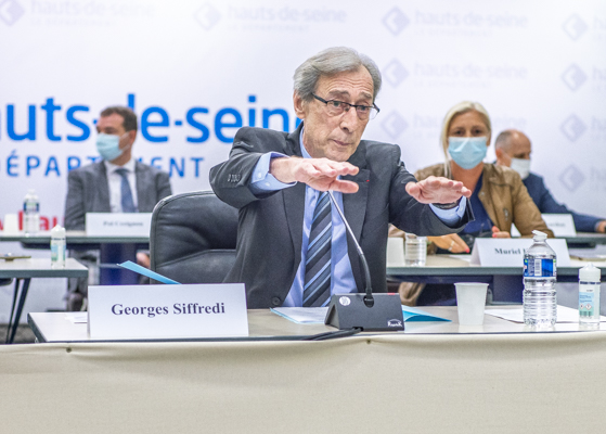 Comme prévu, Georges Siffredi, seul candidat en lice après le retrait du maire de Saint-Cloud Eric Berdoati, a été élu président du puissant conseil départemental des Hauts-de-Seine, lundi 25 mai 2020. Le scrutin s’est tenu dans une des vastes salles de la Paris La Défense Arena, siège du Département, permettant le respect des gestes-barrière. Le maire de Châtenay-Malabry, réélu dès le 1er tour dans sa commune, mais qui devra céder sa place dès ce jeudi, non-cumul des mandats oblige, a indiqué vouloir faire encore plus de social, mais aussi davantage d’investissements. L’élu s’inscrit clairement dans la poursuite de l’action de son prédécesseur, fusion avec les Yvelines incluse.