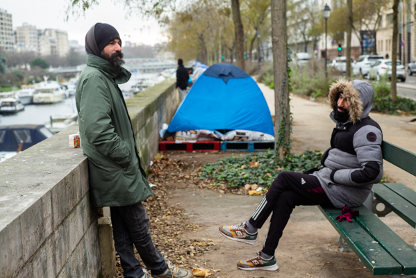 Le long du port de l’Arsenal ou à Stalingrad, les personnes en situation de rue, migrants pour la plupart, racontent des histoires similaires, aboutissant à des situations de blocage. © Jgp
