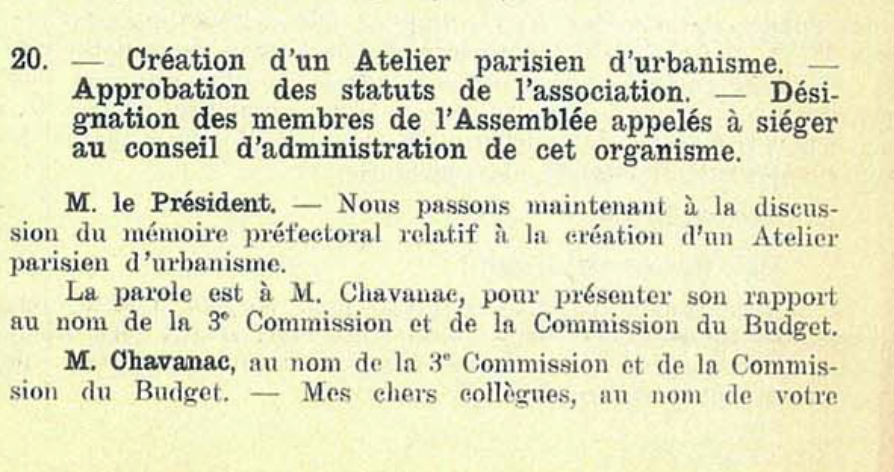 « A la fin des années 1960, la politique de rénovation menée dans le cadre des principes du mouvement « moderne » est très mal vécue par la population, les reconstructions ne suivent pas. Il faut élaborer une nouvelle stratégie urbaine, plus réaliste, moins coûteuse et socialement acceptable, rappelle l’Apur. Créé en juillet 1967, l’Atelier va inventer un outil technique nouveau, pluridisciplinaire et transversal : l’agence d’urbanisme pour tous. Il propose une vision qui construit l’avenir à partir de la ville existante et de ses habitants : arrêt des autoroutes urbaines et notamment de l’axe nord-sud qui devait remplacer le canal Saint-Martin, revalorisation de l’existant, mise en place de bases de données informatisées sur le logement, la population et l’économie, inconnues jusqu’alors. Une vision concrétisée dans le schéma directeur d’aménagement et d’urbanisme (Sdau) et le plan d’occupation des sols (POS) de Paris, tous deux votés en 1977. »