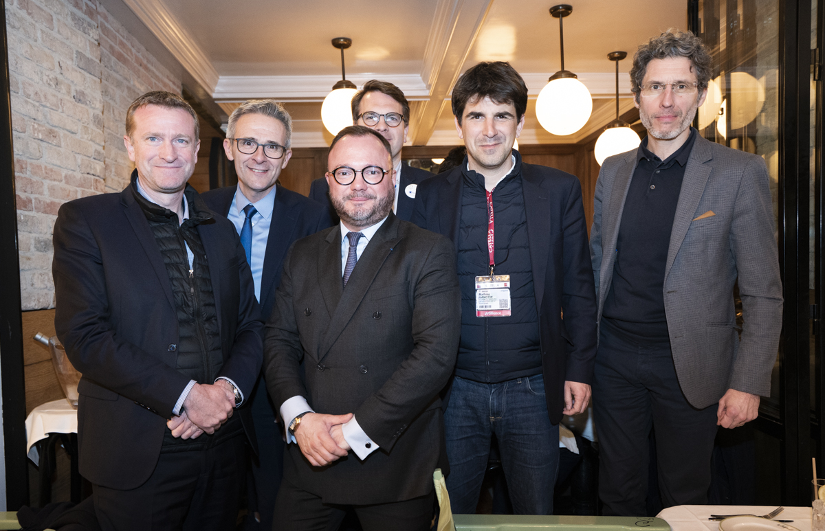De g. à dr : Jean-Philippe Dugoin-Clément, Stéphane Troussel, Geoffroy Boulard, Thomas Hantz, Mathieu Hanotin et Denis Larghero, lors du désormais traditionnel dîner du club des Acteurs du Grand Paris, sur la croisette. © Jgp