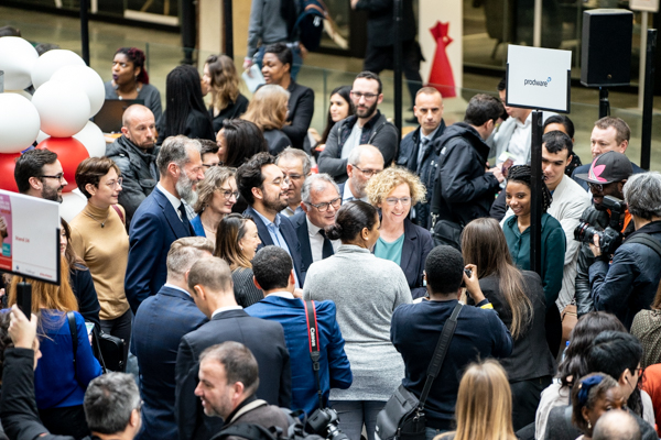 Une ruche. L’immense hall de Station F était bondé jeudi 28 février lors de la visite de Muriel Pénicaud, ministre du Travail, et de Mounir Mahjoubi, secrétaire d’Etat chargé du Numérique, accompagnés de Jean-Marie Marx, haut-commissaire aux compétences et à l’inclusion par l’emploi. Cette visite, organisée dans le cadre de la Semaine des métiers du numérique, a été l’occasion pour les représentants du gouvernement d’évoquer les actions menées en faveur de ce secteur d’activité en pleine effervescence : préparations opérationnelles à l’emploi collectives (POEC) pour les demandeurs d’emploi, l’emploi Store, les 10 Knum (10 000 formations au numérique) du plan d’investissement dans les compétences, etc.