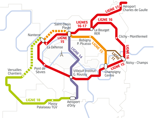 L’enquête publique du tronçon des lignes 14, 16 et 17 entre mairie de Saint-Ouen et Noisy Champs s’est déroulée en fin d’année 2014 et la commission d’enquête a rendu son rapport début février, « sans réserve sur le projet, avec quelques recommandations, qui seront prises en compte », rapportent le conseil régional et le ministère. De nouvelles enquêtes d’utilité publique seront respectivement lancées à l’automne 2015 et début 2016 concernant les projets de la ligne 15 ouest et 15 est. Pour rappel, la maîtrise d’ouvrage de ces opérations vient d’être transférée du Stif à la Société du Grand Paris (SGP). Les enquêtes d’utilité publique de la ligne 17 à Roissy et de la ligne 18 auront également lieu « début 2016 ».