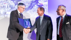 – Prix « Logistique urbaine, mobilités et transports » : Jonathan Sebbane, directeur général de Sogaris, et François Giannesini, architecte, Syvil architectures pour l’immeuble inversé