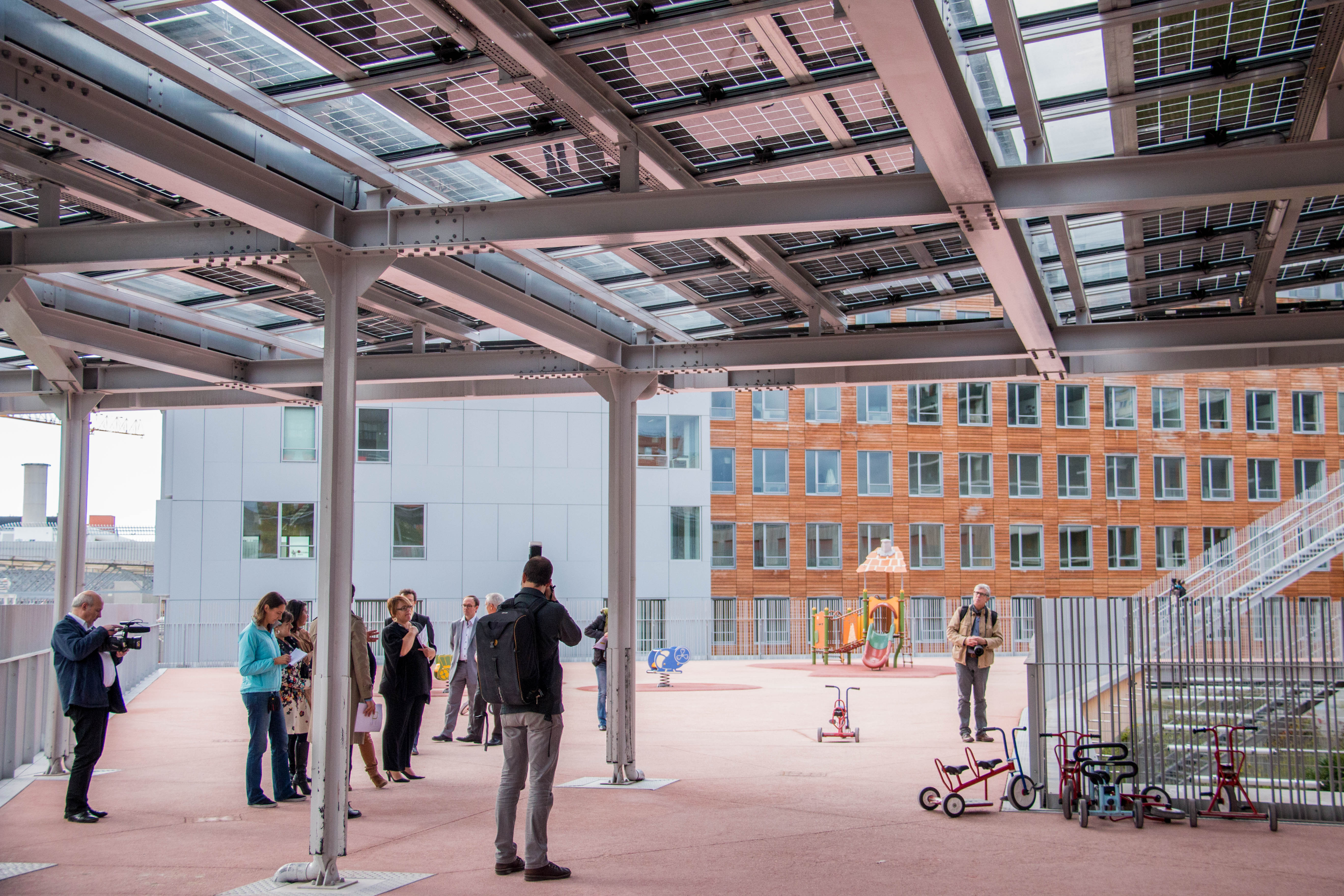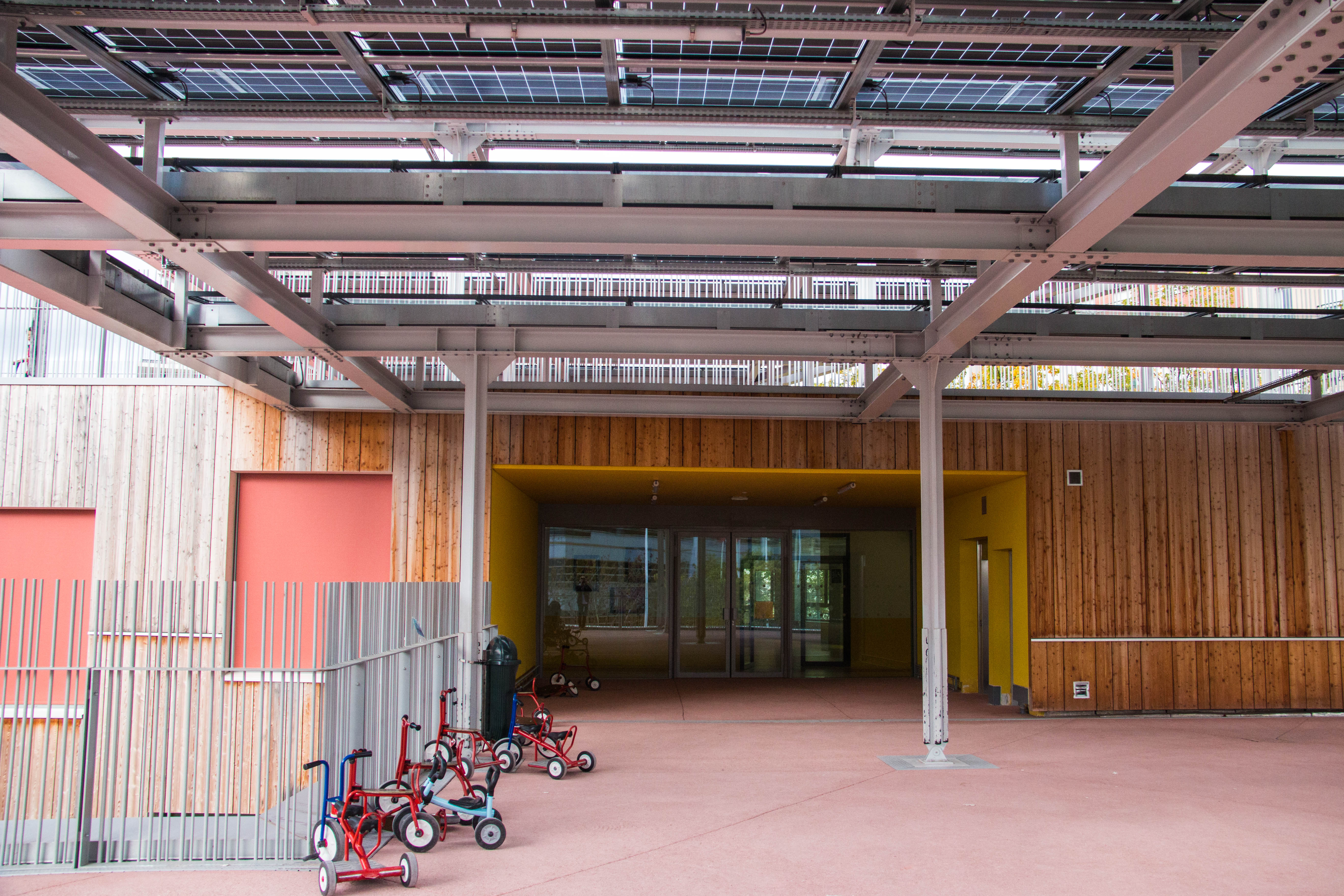 Les panneaux photovoltaïques font office de préau.