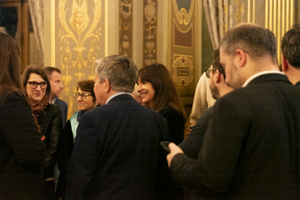 Anne Hidalgo entourée de membres de la majorité municipale, dimanche 4 février à l’issue du scrutin. © Jgp