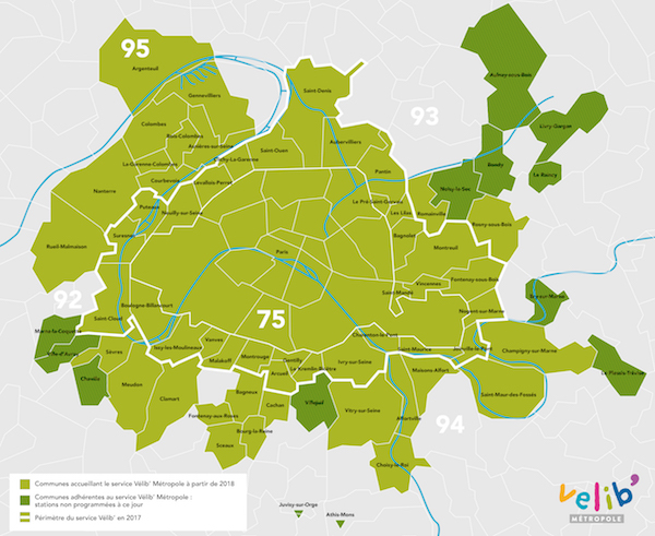 Contrairement à son prédécesseur, le nouveau Velib’ ne sera plus, en effet, cantonné à, au plus, 1,5 km de Paris. Il sera métropolitain. 68 communes seront desservies, soit 38 de plus que précédemment. La métropole s’était engagée à financer à hauteur de 10 000 euros les stations de banlieue. 400 stations – sur les 1 400 que comptera le réseau – seront installées en dehors de la ville-capitale, contre 200 précédemment. « Nous allons prévoir un « édredon » financier pour absorber le surplus, autrement dit les stations supplémentaires », a promis Patrick Ollier. La métropole a également dépensé 4,7 millions d’euros pour que soit assurée la continuité des pistes cyclables entre les communes du Grand Paris.