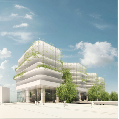 Une place généreuse est laissée à l’agriculture urbaine avec une grande terrasse accessible au public offrant des jardins partagés, un refuge faunistique, des serres, divers espaces verts et un jardin dégustation. Le sport est possible dans différents espaces et via un parcours santé de 400 mètres. Le Groupe Pichet et Foncière des régions propose de leur côté deux bâtiments distincts dont le plus grand dédié aux activités tertiaires (23 000 m2) longe les voies ferrées et consacre l’intégralité de sa toiture à l’agriculture (1 500 m2).